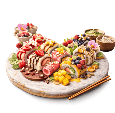 🍓 Aprende paso a paso a preparar diferentes tipos de sushi dulce: con arroz, crepe, bizcocho, masa de galleta y múltiples combinaciones, siguiendo recetas claras, prácticas y detalladas.